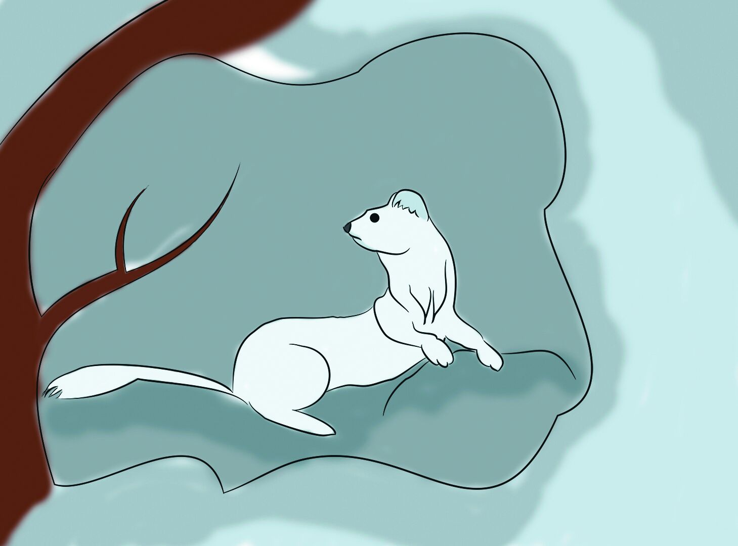 И ушёл заяц. А горностай ему вслед смотрел. Пока красные капли крови снегом не занесло.