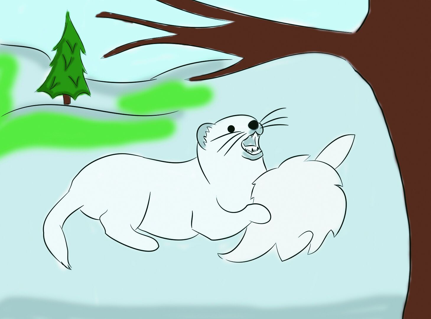 Горностай уже обрадовался, что медведь в его пользу дело решил. Но медведь горностая за кончик хвоста схватил - кончик чёрным стал.