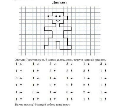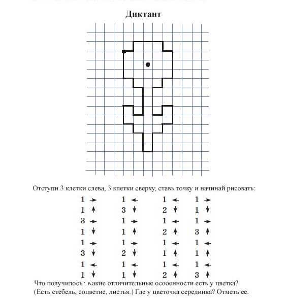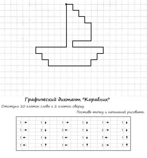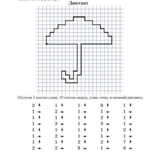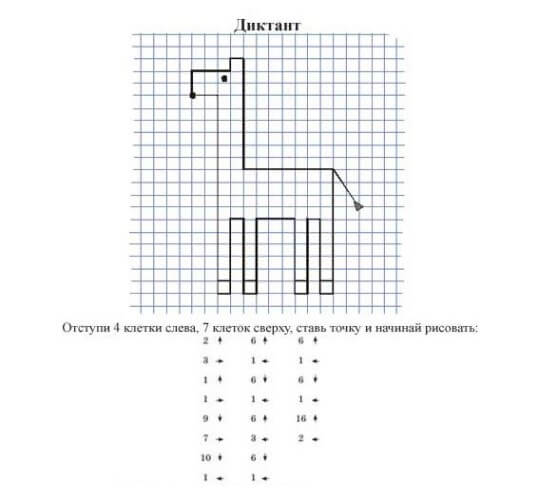 К примеру, 4 показывает ученику, что надо провести ровную линию на 4 клетки вверх. Принцип графического диктанта совсем несложный, с ним легко справится ребенок 5 -7 лет.