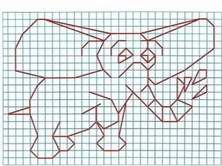 Задания средней сложности предполагают умение хорошо считать не только в первом десятке. Расширяются возможности движения под углом в указанном направлении. Такие диктанты могут быть выполнены не только одним цветом. Рисунки становятся более реалистичными.