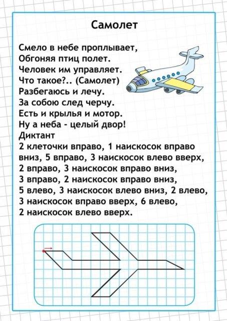 Начиная с более старшего возраста для графического диктанта все рисунки рассчитываются на обычную школьную тетрадь (в тетради в крупную клетку они не поместятся).