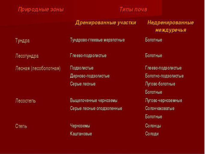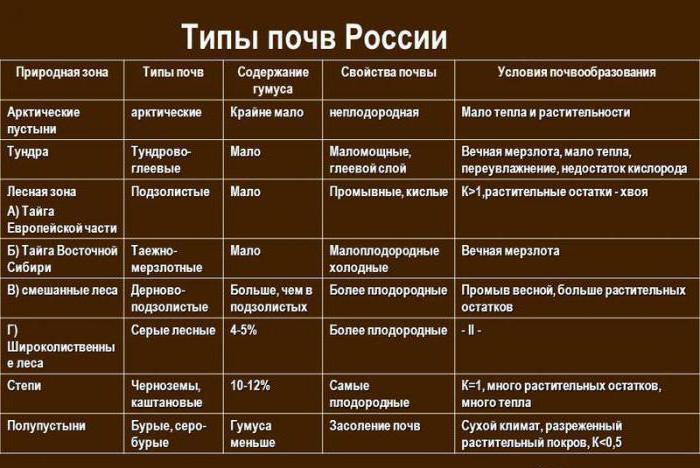 Если рассмотреть типы почв (таблица представлена ниже) России и сравнить степень плодородия, станет понятен уровень пригодности для земледелия тех или иных участков.