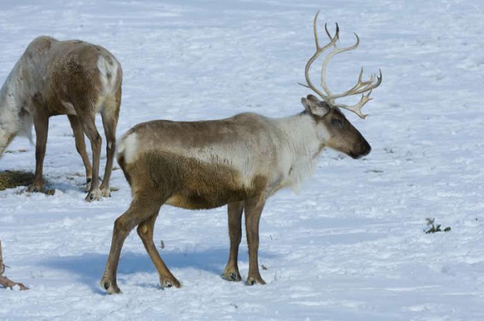 Это благородное животное обладает отличной выносливостью, а густой мех защищает его от морозов и ветров тундры. Ежегодно олени совершают миграцию в северные части региона. Острыми копытами они выскабливают из замершей почвы остатки лишайников, но их бывает очень мало для полноценного питания. Поэтому олени меняют область своего обитания и направляются к северу.