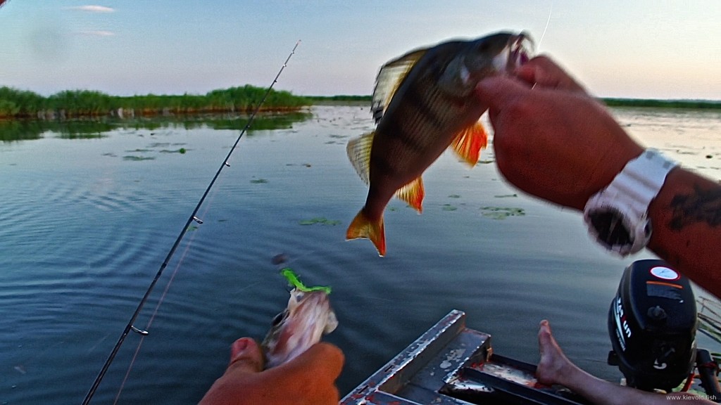 Создавалось такое впечатление, что рыбы просто хотят сожрать не только « Toirtap» , но и нас вместе с ним! Здоровенные окуни клевали что называется «в закид»! Резкие поклевки едва не выбивали удилища из рук удилище, а ноги едва не вылетали из кроксов! Такого поворота событий мы явно не ожидали. Окуньки были явно не ультралайтового размера.