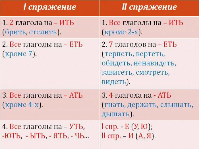 Глаголы-исключения — это вышеуказанные одиннадцать слов, которые относятся ко второму спряжению, хотя имеют окончания первого. При спряжении этих глаголов по лицам и числам следует обращать внимание на их личностные окончания. Аналогично, глаголы «брить» и «стелить» — исключения в первом спряжении, ведь они имеют окончание второго. Эти слова нужно просто запомнить, чтобы употреблять в окончаниях правильные гласные.