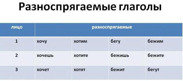 Есть и разноспрягаемые глаголы. К ним относятся глаголы «хотеть», «бежать», а также их производные. Так глагол «хотеть» в единственном лице склоняется по образцу первого спряжения, а вот во уже по образцу второго.