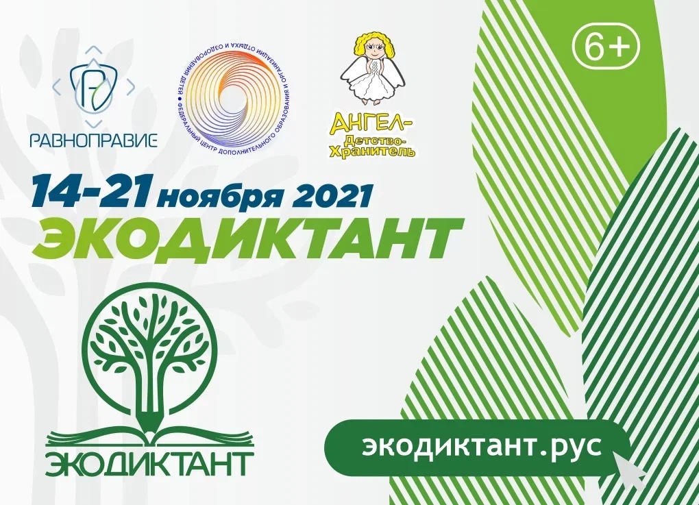 С 14 по 21 ноября по всей России пройдет Всероссийский экологический диктант 2021. Это ежегодный проект, основная цель которого обеспечение экологической безопасности нашей страны, повышение уровня экологической культуры и грамотности жителей России, развитие просвещения и волонтерства в экологической сфере.