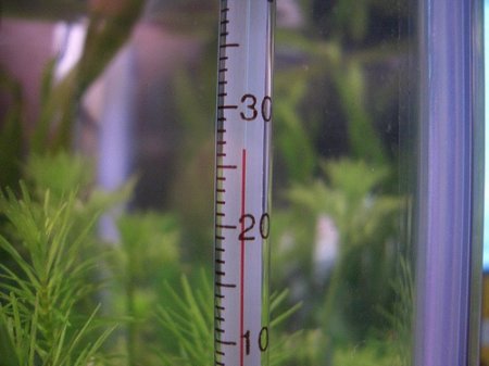 Как известно рыбы и растения не способны поддерживать на постоянном уровне свою температуру и вынуждены довольствоваться теми условиями, которые навязываем им мы. Продолжительность живет жизни рыб в зависимости от температуры воды имеет почти линейную зависимость. Так, например, если один вид рыб живет при температуре 20°С около полугода, то при температуре 30°С он будет жить 3 месяца. Это утверждение верно для всех холодноводных рыб, для тепловодных рыб эта зависимость менее выражена, но все равно существует. Кроме того, тепловодные рыбы способны обитать в довольно узком коридоре температур, что накладывает дополнительные требования к стабильности температуры. Для наиболее распространенных аквариумных рыб диапазон температур находится в пределах 20-27°С.