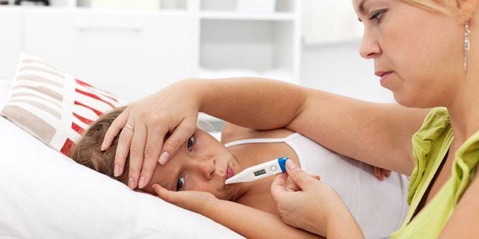 Лечение зависит от диагноза. При ангине назначают антибиотики. Фарингит может быть вирусным или бактериальным. Для назначения медицинского препарата сначала уточняется диагноз. Герпангина – вирусное заболевание, антибиотиков лечение не требует. Острый стоматитУ детей, которые часто тянут в рот грязные предметы, бывает стоматит. При стоматите у малыша начинает обильно течь слюна. У него поднимается температура, снижается аппетит. Лечение заболевания требует консультации специалиста. До прихода врача следует посадить ребенка на диету из жидких и протертых продуктов. Рот можно полоскать настоем шалфея и ромашки или фурацилином. Острый отитПри купании в ушки новорожденного иногда заливается вода, которую родители вовремя не вытерли. На сквозняке ушко переохлаждается, инфекция в нем активизируется, начинается отит. Градусник при остром отите может показать до 40 градусов, ушки у малыша болят. Он их теребит и плачет от боли. В зависимости от тяжести заболевания врач назначает антибиотик для закапывания в ушки или антибиотик через уколы. Иногда можно обойтись приемом таблеток, а не уколами. Острый отит у ребенка требует врачебного вмешательства Розеола (розеолезная сыпь)Розеолой (внезапной экзантемой) болеют маленькие дети в возрасте от 9 месяцев до 2 лет. Начинается болезнь подъемом температуры до 38,5-40 градусов. У малыша набухают лимфоузлы на шее. Повышенная температура может держаться до 5 дней. Затем она спадает, на теле появляется пятнистая розовая сыпь. Потом сыпь пропадает. Болезнь приносит распространенный тип герпеса. Около 70% детей болеют ею в раннем детстве. ОРВИ, грипп, простудаОбычная простуда может вызвать сильный жар. Это значит, что организм ребенка борется с инфекцией с помощью своей иммунной системы. Без таблеток болезнь должна пройти сама за 7 суток. Можно давать человечку чай с медом, кипяченое молоко, малиновое варенье и жаропонижающее при сильном жаре. Это поможет вылечиться от простуды. Показания термометра превышают норму при ОРВИ и гриппе. Лечение в таких случаях назначает врач, исходя из общего состояния больного и его личных особенностей организма. Только врач может понять, какая болезнь началась у вашего детеныша. Инфекции мочевыводящей системы и кишечникаБолезнь мочевыводящих путей может характеризоваться только существенным жаром. Наиболее внимательные родители замечают, что малышу больно мочиться, что у него отекли ножки или лицо. Диагноз ставит врач, для чего он назначает анализы. Инфекция мочевыводящих путей имеет бактериальный характер. При заболевании врач выписывает лечение антибиотиком. Кишечные инфекции вызывают первоначально только сильную лихорадку. Остальные проявления – диарея, тошнота, рвота – появляются не сразу. До этих признаков иногда проходит несколько часов, а то и сутки после начала болезни. Как облегчить состояние ребенка с сильным жаром?Пиретической называют температуру от 38 до 40 градусов (см. также: какую ребенку нужно сбивать температуру?). Если отметки на шкале градусника таковы, следует вызвать врача. Ребенку надо дать детское жаропонижающее, можно применить немедикаментозные способы лечения. Жаропонижающее желательно дать в виде сиропа, оно быстрее и эффективнее действует. Как сбить температуру без лекарств?Если малышу меньше 13 недель и у него появился жар, а 