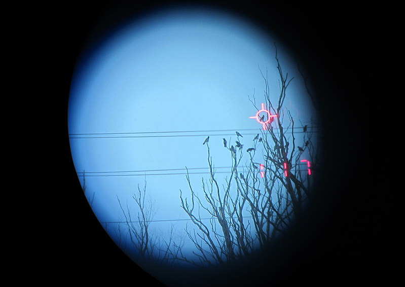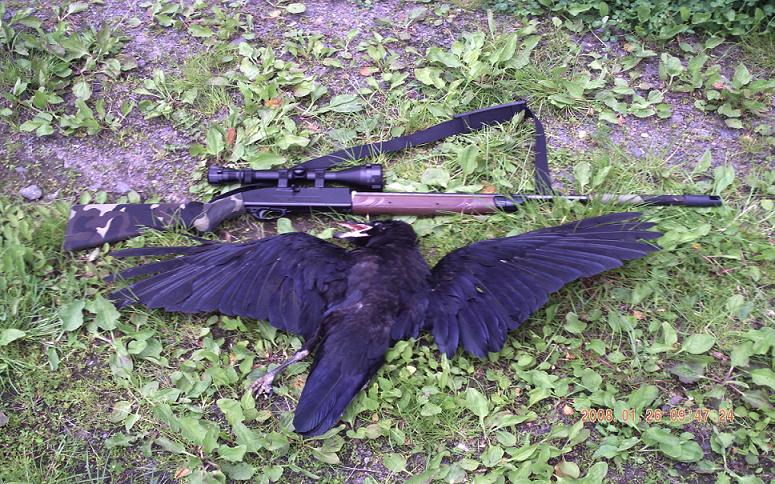 Сказано - сделано! Осторожно приоткрыв окно выцеливаю точно в крыло самозабвенно орущую ворону и ак-к-куратненько жму на спуск. Щелчок. В оптику вижу как ворона одновременно закрывает клюв и глаза и :падает на головы старушкам. Видимо легкий колпачек таки прилично разогнался и пройдя между пером работал внутри тушки словно рубильник(просто «выключился свет» ).