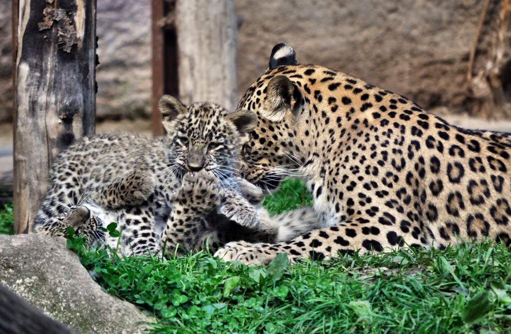 Беременность у самки длится три месяца, обычно, она вынашивает три малыша. Для своих детенышей самка леопарда выбирает укромное местечко, чаще всего, в густых зарослях.