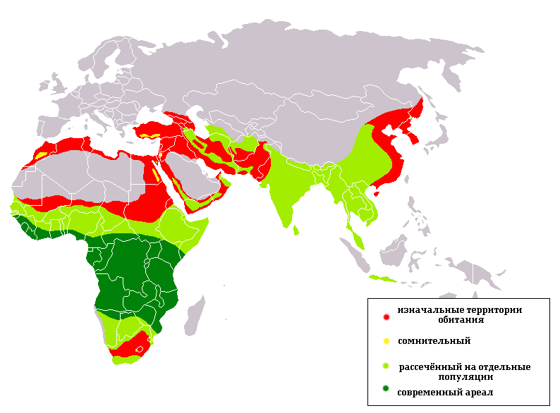 Ареал леопарда весьма обширен. Встречается эта кошка повсеместно на просторах Африки и Азии, доходя на севере до Кавказских гор и амурской тайги. Это животное очень легко приспосабливается к различным местообитаниям и населяет разные ландшафты: встретить леопарда можно в саваннах, полупустынях, горах и густых лесах.