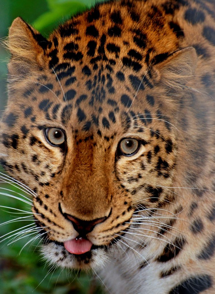 Леопард – красочная, грациозная, невероятно величественная и хитрая кошка. Это быстрое и осторожное животное. Имеет крепкое, мускулистое, сильное тело. Обладает превосходным зрением, отлично видит в разное время суток. Главное оружие леопарда: очень острые когти и зубы, которые его прокармливают. Длина тела животного достигает 80-180 см, а вес – 50 кг (самка) и 70 кг (самец). Главное достоинство: нарядный мех, который легко скрывает хищника, делая незаметным для жертвы. Сегодня леопарды отнесены в Красную книгу как исчезающие виды.