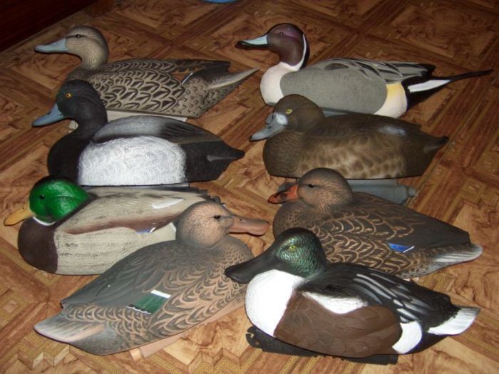 Если говорить о выборе утиных чучел, то здесь нужно приобрести набор из различных видов уток. Например, кряква, чирок и нырок являются самыми популярными в комплекте. Их количество должно составлять не меньше 15 штук, а лучше 25-30.