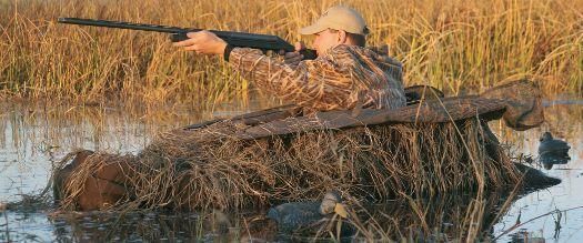 Особое значение на весенней охоте на утку имеет маскировка охотника , которая бывает двух видов: либо шалаш, либо маскировочный халат . Шалаш должен быть достаточно просторным, и тщательно замаскированный ветками, чтобы не выделяться на окружающей местности. Для маскировки предпочтительней использовать природный растительный материал, но ни в коем случае не сено - его может быстро сдать ветер. В необходимых местах стенок шалаша оставляются отверстия - бойницы. Шалаш устанавливается на берегу водоема, на удаленных островках, и порой и на плотах. В лодку уместить шалаш проблематично, поэтому любители охоты с лодки используют маскировочные халаты. Определить какой халат лучше трудно, ведь у каждого свои предпочтения. Кому-то больше нравится расцветка «под камуфляж», а кому-то халаты типа «кикимора» или «леший». Каждый из вариантов по-своему хорош и удобен в определенных условиях.