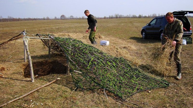 Весенняя засидка может быть оборудована на берегу, в воде, на поле – в зависимости от траектории полета птицы и места ее приземления. Рекомендуется: