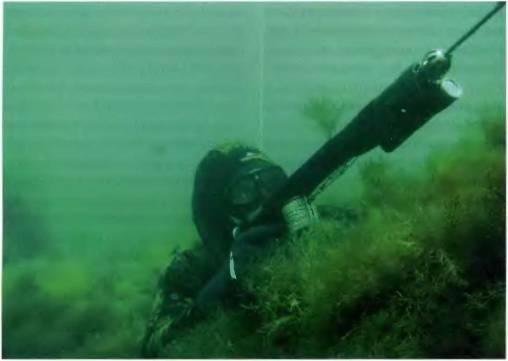 24. Ни в коем случае нельзя в качестве камуфляжа одевать сверху какую — либо одежду, так как, во-первых, она сковывает движения и увеличивает ваше сопротивление в воде, во-вторых, многократно возрастает риск зацепиться одеждой за что-либо на дне. А вот засунуть за ремешок маски пару пучков водорослей да спрятаться в засаду поглубже будет и правильнее, и проще, и в итоге результативнее.