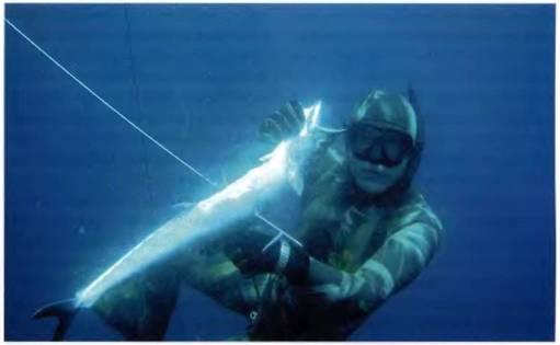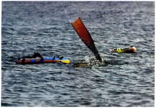 3. При занятиях экстремально глубоководной охотой, а это уже более 30 метров (хотя тут стоит заметить, что для каждого спортсмена экстремальные значения глубин индивидуальны), подходя к предельным для себя глубинам, особенно важно становится наличие страхующей и обеспечивающей лодки. Хорошо, если в ней будет акваланг, а ваш страхующий — разумеется, сертифицированный дайвер — умеет правильно и грамотно пользоваться всем снаряжением.