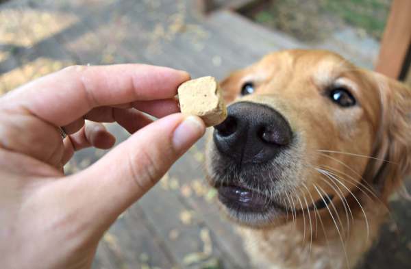 Поощрение применяется за выполнение собакой команды или сигнала дрессировщика. Так, если дрессировщик отдает команду: «Ко мне!» и собака подходит и садится, за это ей в этот момент нужно дать кусочек мяса или другого лакомства, погладить и сказать: «Хорошо, хорошо». Если по команде «Ко мне!» собака подходит не сразу или нечетко выполняет приказ, но после нескольких повторений все же его выполнит, наказывать собаку нельзя, так как этим можно оттолкнуть ее от себя, и она будет бояться хозяина. Привязанность и доверчивость собаки к дрессировщику является основным в воспитании, натаске и дрессировке.