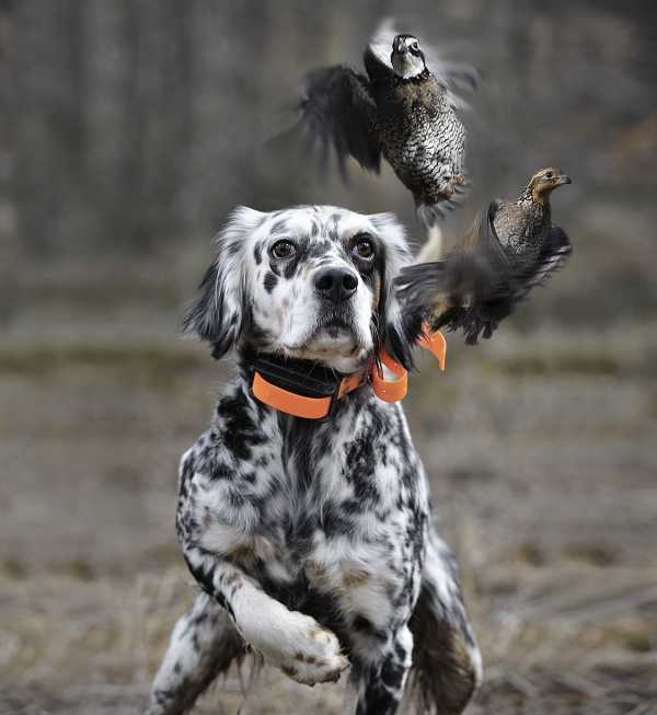 Для этого нужно отпустить питомца в места, где много дичи. Собака должна понять это по запаху и встать в стойку. Когда птица взлетит, питомец, вероятнее всего, бросится на нее. Здесь важно не дать юному охотнику достичь дичи, нужно сказать «Тише!&; и остановить его. Часто дрессировка охотничьих собак проходит с применением парфорса.