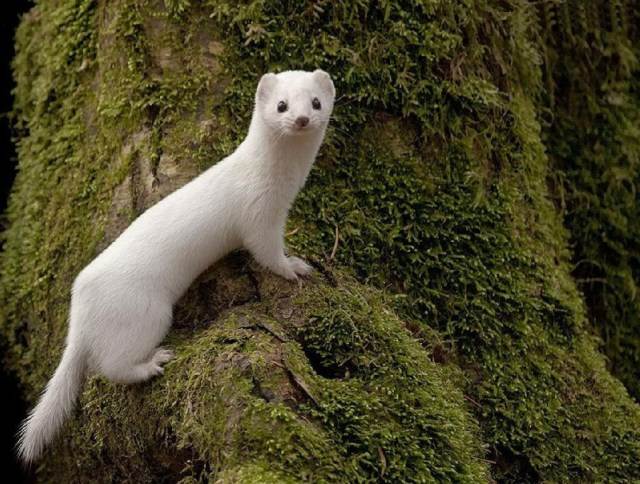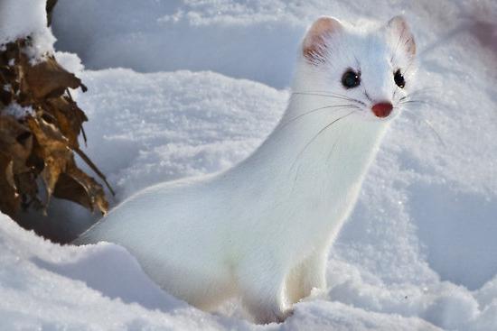 С наступление осенних холодов ласка линяет. Ее мех приобретает светлый окрас. На снегу зверек совершенно незаметен. Выдают его лишь крошечные черные глазки.