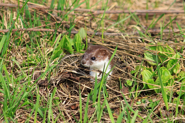 Некоторые норки ласки были подтоплены начинающимся половодьем, и тогда ласка выскакивала оттуда мокрой. Конечно, она вовсе не играла со мной в прятки, как это могло показаться со стороны, ласка охотилась. На поверхности она высматривала небольших птиц, а в подземных ходах искала мышей и землероек. Миниатюрные размеры этого хищника позволяют ему настигать своих жертв прямо в их собственных норах! Кроме мышей и птиц, ласка может охотиться и на лягушек, и на насекомых. Зимой ласка преследует грызунов под снегом. В это время года зверёк носит белоснежную шубку, а летом его окраска двухцветная - верх и лапы окрашены в коричневый цвет, а низ белый. На время размножения самка ласка строит из травы гнездо в форме шара. В выводке от 4 до 8 детёнышей.
