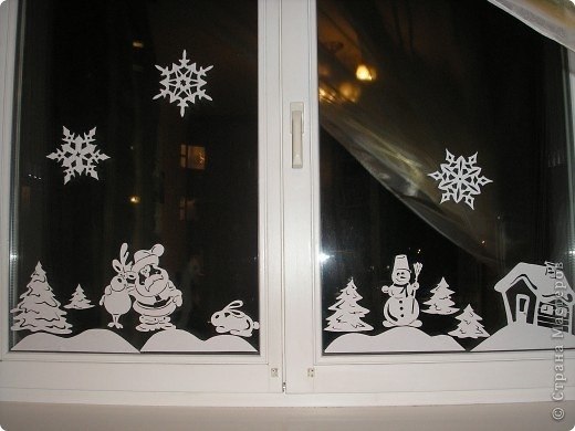 Даже такие простые вытынанки на окнах будут смотреться очень нарядно: