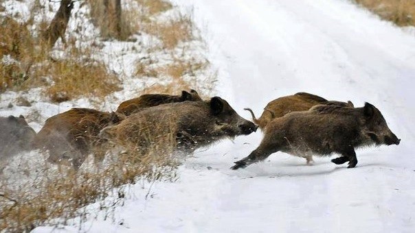 Зимой вепри активно перемещаются в поисках корма