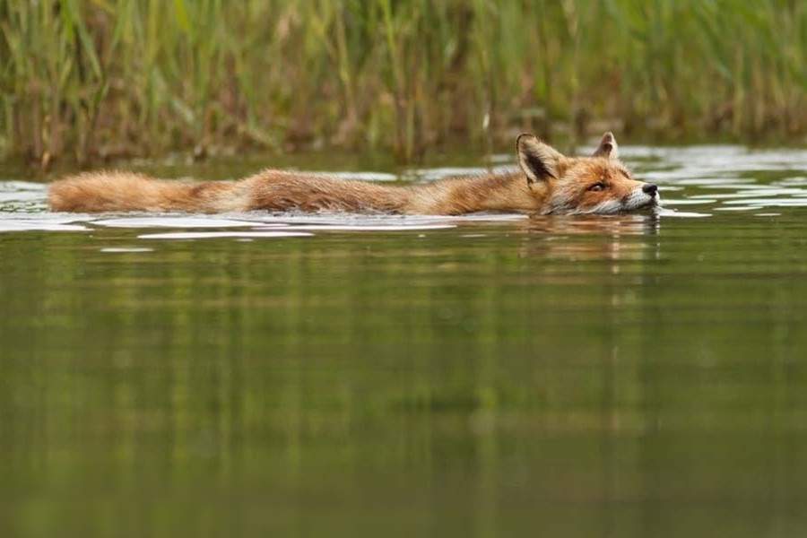 Лисы — превосходные пловцы. Кстати, они могут даже неглубоко нырять, охотясь за рыбой.