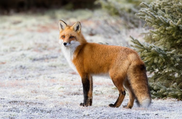 У рыжей лисицы кончик хвоста окрашен в белый цвет, а лапки имеют черные вкрапления.