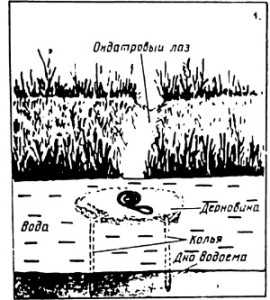 Установка капкана на месте вылаза ондатры из воды