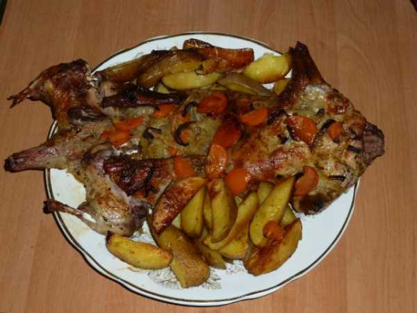 По окончанию гнет снимается, лук и маринад убираются. Мясо можно жарить, а еще вкуснее получится по такому рецепту – выложить утятницу капустным листом или мелко порубленной капустой, сверху тушку и залить сливками так, чтобы все мясо было покрыто на 1 см. Накрыть и тушить в духовке около 1,5 часа (чем больше тушка, тем дольше). Температура – не выше 120 градусов. Гарнир подходит любой. Соус получается невероятно вкусный.