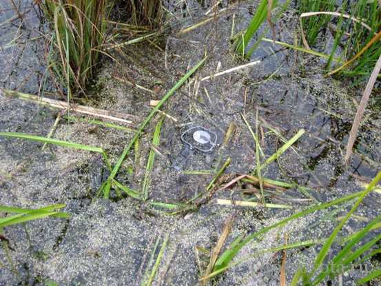 Поводок крепим к палке, которую втыкаем в дно водоема на некотором удалении от капкана, кочек и камыша, чтобы зверек не мог на них взобраться. В плотных зарослях тростника вокруг палки выдергиваем все растения на длину поводка. Это сделать необходимо, т.к. ондатра, нередко сгрызая ближайшие растения, делает из них плотный клубок, который служит ей опорой для отмола лапы.