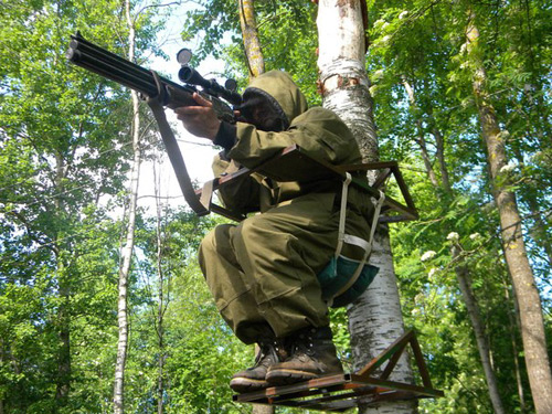 Лестница так же, как и лабаз, устанавливается у тропы, по которой должен пойти хищник, на расстоянии около 150 м с подветренной стороны, чтобы волк не почувствовал охотника. На данном расстоянии от привады зверь ведет себя менее осторожно, что и нужно охотнику.