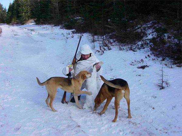 Охота по белой тропе (по снегу) бывает довольно успешной, если снег неглубок, но плотен, а температура воздуха не ниже — 10°. Тяжелы для работы гончей наст или мерзлая земля: о них она быстро сбивает ноги. Совсем плохой бывает охота по пестрой тропе, когда снег лежит только местами: собака быстро теряет след.
