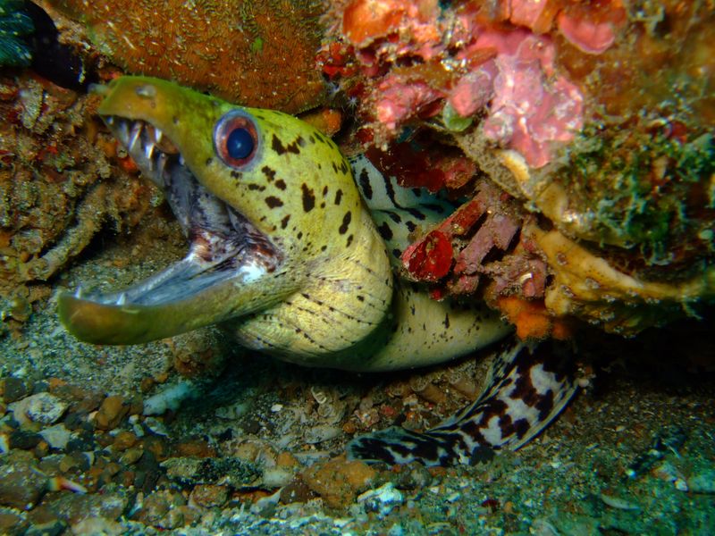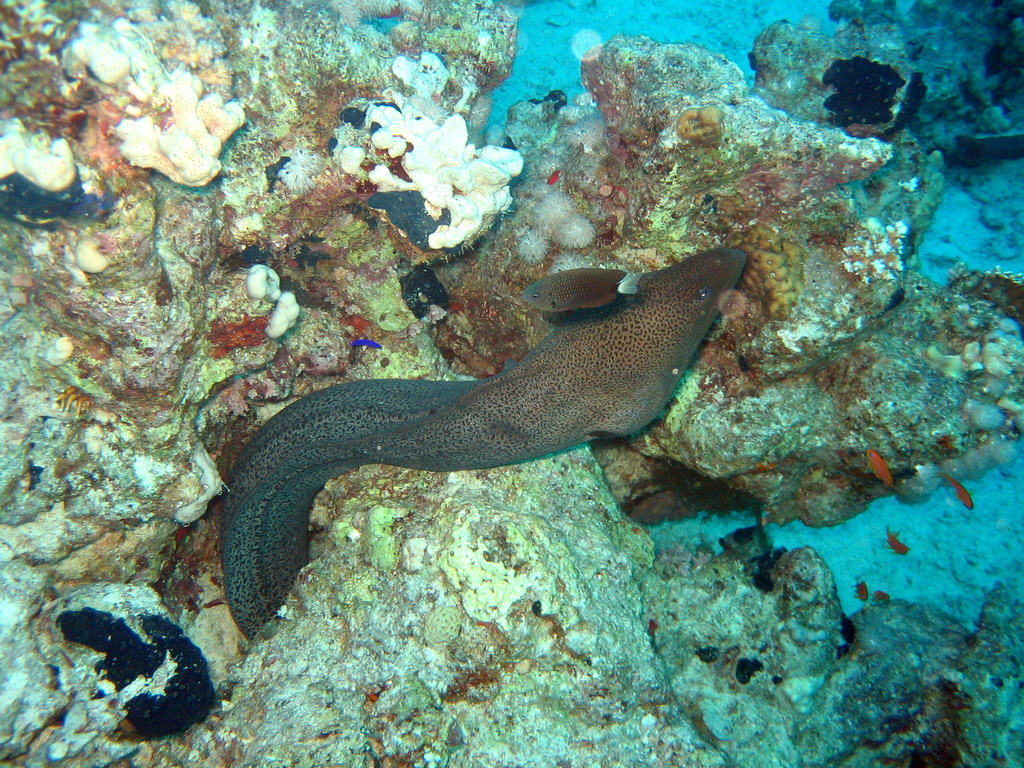 1. Так и мурена нападет на гораздо более крупного противника только в целях самозащиты, но многие дайверы часто неосторожно просовывают руки в небольшие пещеры и гроты, которые расположены в коралловых рифах, хотя как раз там и живут мурены. На всей планете обитает около сотни видов этих рыб, различающихся по размерам.