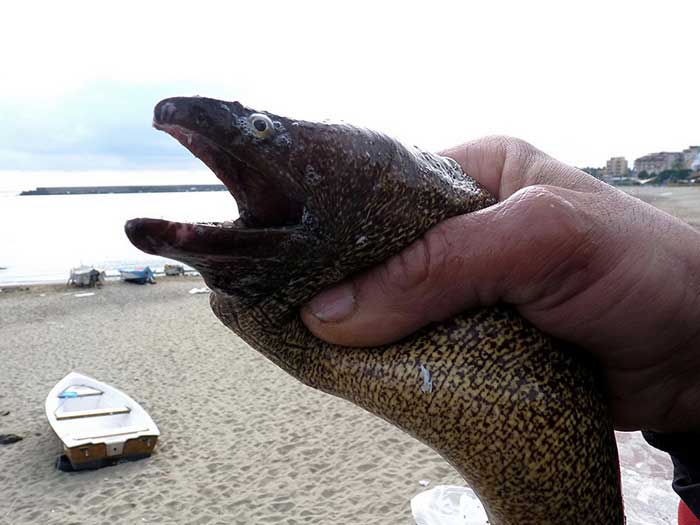 Стремясь освободиться, мурена бешено извивается, закручивается вокруг снастей и кусает все, до чего может дотянуться. Попав в сети, мурена столь же яростно сопротивляется.