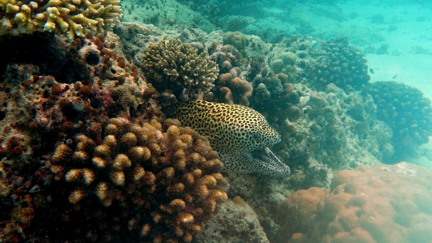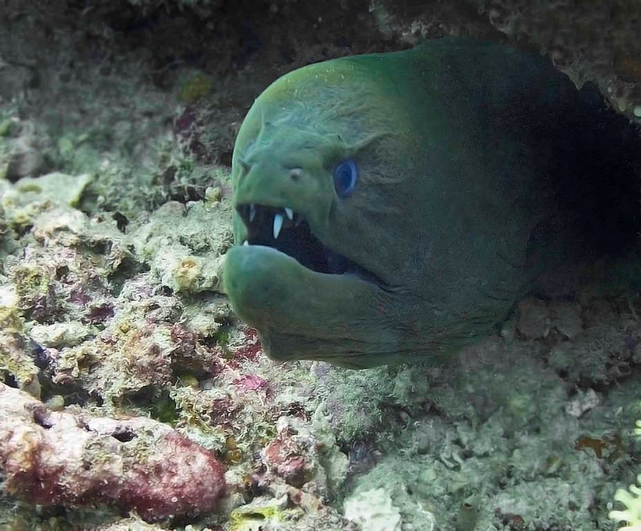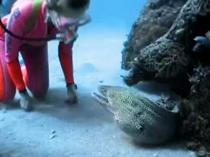 Если мурену не провоцировать, она не нападает. Очень редки случаи немотивированной агрессии со стороны мурен, возможно такие мурены просто были замучены голодом.