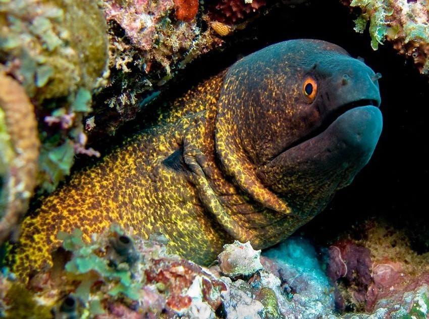 6. Рыба – змея мурена не имеет чешуи, а окрас у нее может варьироваться в зависимости от среды обитания.