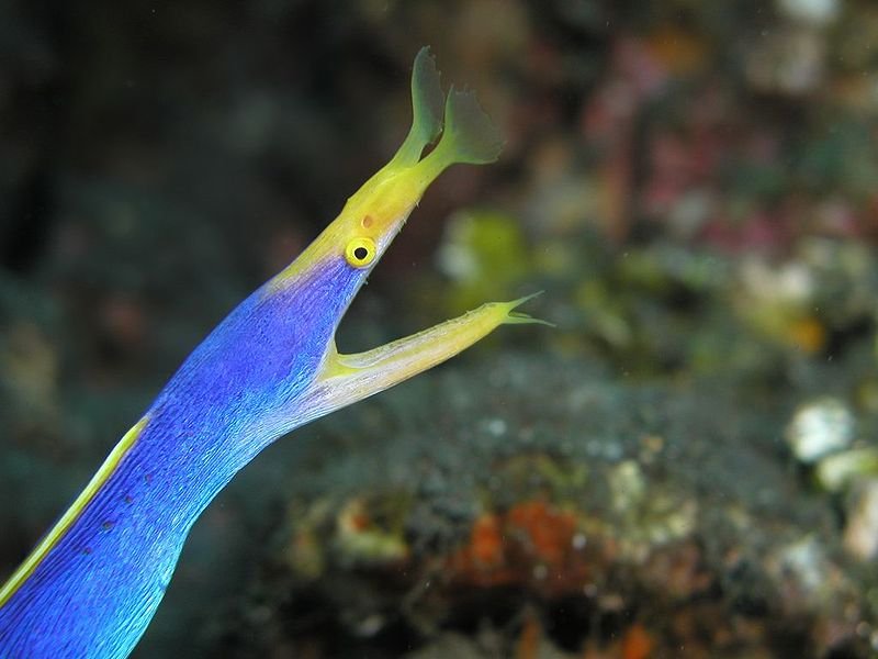 Носатые мурены - не крупный вид мурен. Они охотятся очень интересным способом. Над их верхней челестью есть выросты, вчесть которых они и получили своё название.