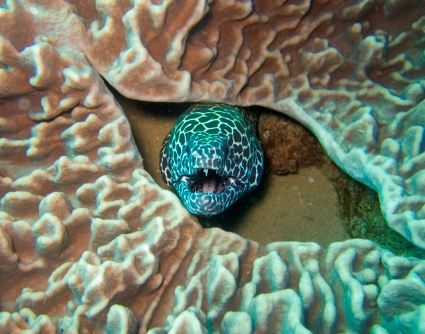 Саблезубая мурена - самый зубастый вид мурен.