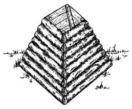 Ниже на фото изображена наглядно схожая конструкция, с той разницей, что в ней используется не привычный сруб. Его основание 2х2 метра, к своей вершине он сужается до 1х1 метра. Данную ловушку не обязательно изготавливать из полноценного дерева (бревен). С этим справляется брус 50х50 в качестве остова или скелета, который зашивается необрезной доской. Копается яма такой глубины, что бы попав внутрь зверь не мог с легкостью выпрыгнуть. Далее сруб прикапывается и на дно ямы выкладывается приманка, манящая хищника. Попав в такую западнб волку будет крайне тяжело или невозможно оттуда выбраться. Остается только время от времени проверять на наличие в ней зверя. Способ хорош тем, что конструкция долговечна и может использоваться не один год