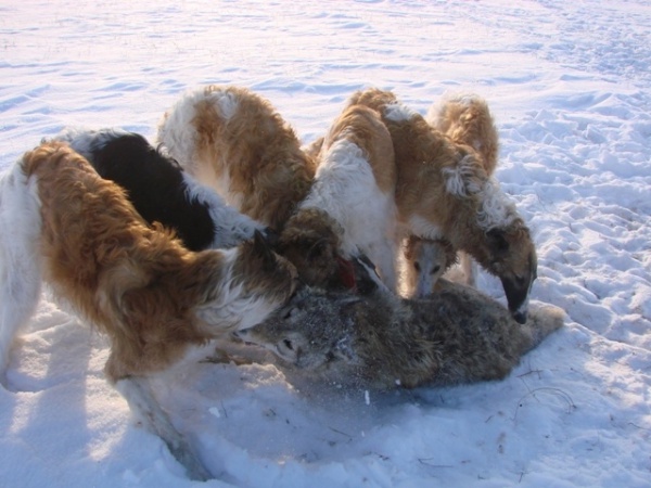 Птица считается готовой к настоящей охоте тогда, когда она достаточно быстро начинает нападать и клевать глаза жертве. Ведь так она полностью обезоружит волка.