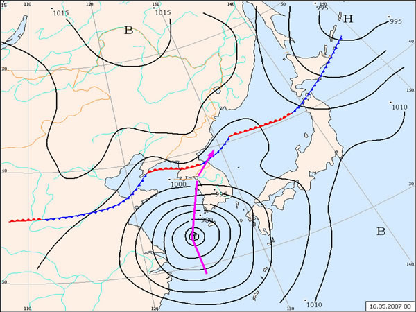 19 июля 2007 года под влиянием глубокого циклона и активных фронтальных разделов находились: север Амурской области, Хабаровский и Приморский край, северо-восточные и восточные провинции Китая, а также Корейский полуостров. В этих районах шли дожди, временами сильные (15-49мм за 12 час.) Дожди сопровождались грозами и порывистым ветром.