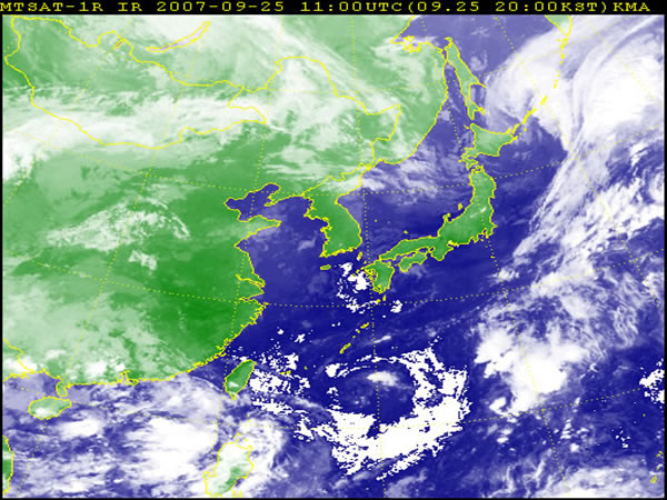 Количество снимков в сутки со спутников NOAA не всегда бывает достаточным для анализа и прогноза синоптических процессов. В этом вопросе на помощь синоптику приходят снимки с геостационарного ИЗС MTSAT – IR, которые позволяют непрерывно следить за эволюцией облачных систем в циклонах и тайфунах, отслеживать возникновение и развитие кучево-дождевой облачности и связанных с нею шквалов и ливневых осадков, определять скорость и направление перемещения крупномасштабных облачных образований по последовательности изображений облачного покрова. Орбита геостационарного спутника создает уникальную возможность непрерывного наблюдения (через 60 мин.) за процессами, происходящими на больших территориях земного шара, что значительно дополняет имеющуюся информацию для анализа синоптических процессов и составления прогнозов явлений.