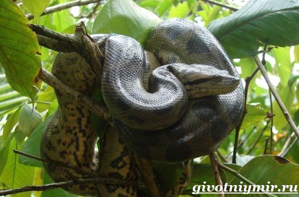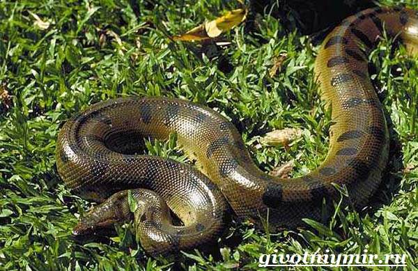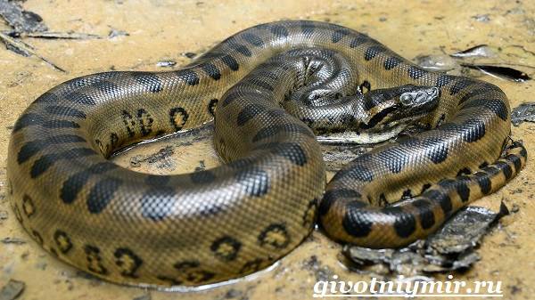Анаконда Южной Америки – самая крупная в мире змея семейства удавовых. При встрече с ней у человека холодеет кровь и появляется парализующий члены страх. Сильное извивающееся тело змеи способно задушить любого, кто стоит у нее на пути, даже взрослого быка. И неудивительно, самая длинная змея в мире может сравниться с автобусом. Ее вес, в отдельных случаях, достигает массы трех взрослых мужчин.