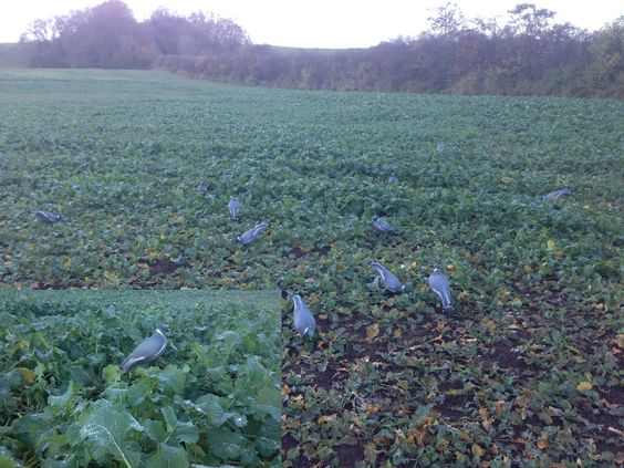 Заманить голубей можно с помощью приманки. Для достижения хорошего эффекта блокировки при охоте на голубей вы должны установить по крайней мере 15 голубей-чучел. Чучела должны быть размещены в форме буквы «U» или «V» (подковообразная схема) обязательно против ветра, потому что так вы сможете контролировать падение убитых птиц. Это обусловлено тем, что в основном они и падают в центре вашей буквы «U». Для того, чтобы привлечь внимание голубей на большом расстоянии, можно повесить несколько чучел на высоких деревьях.