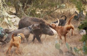 Собак задействуют обычно уже, когда кабан убегает в состоянии ранения, чтобы добрать его. Иногда собаки преследуют кабана несколько километров.