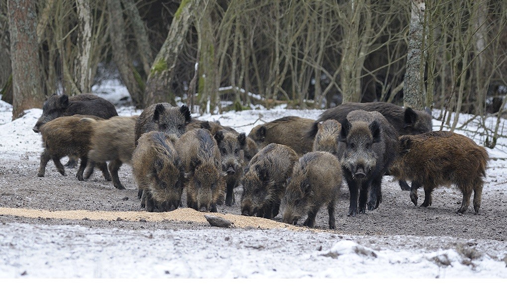 Зимой труднее найти место засидки. Выбирайте локации поближе к зарослям камыша, густым деревьям. Как и в любое другое время на кормежку зверь выходит чаще ночью, чем днем. Лежбище устраивает на муравейниках или под большими елями. По следам на снегу и помету можно определить место нахождения животного.