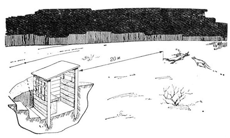 Рекомендуемое расстояние между засидкой и привадой 20-30 метров